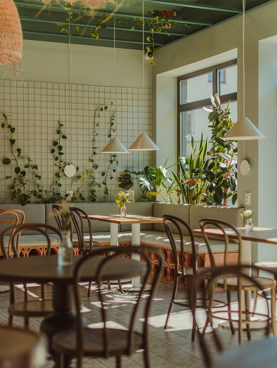 Opracowujemy kompleksowe projekty wnętrz restauracji, kawiarni, biur, sklepów, showroomów, hoteli. Dodatkowo oferujemy projekt identyfikacji wizualnej: nazwy, logo, menu, szyldów etc., który razem z projektowanym wnętrzem tworzy spójny wizerunek marki.