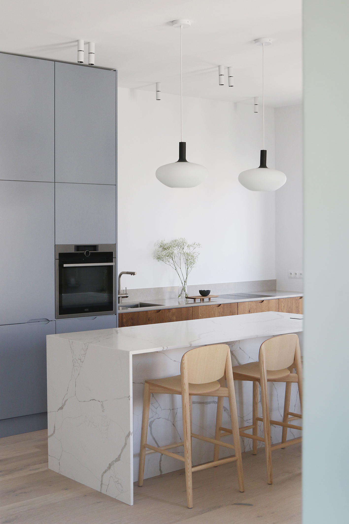 Błękit nieba w minimalistycznej formie: mieszkanie w centrum Wrocławia.