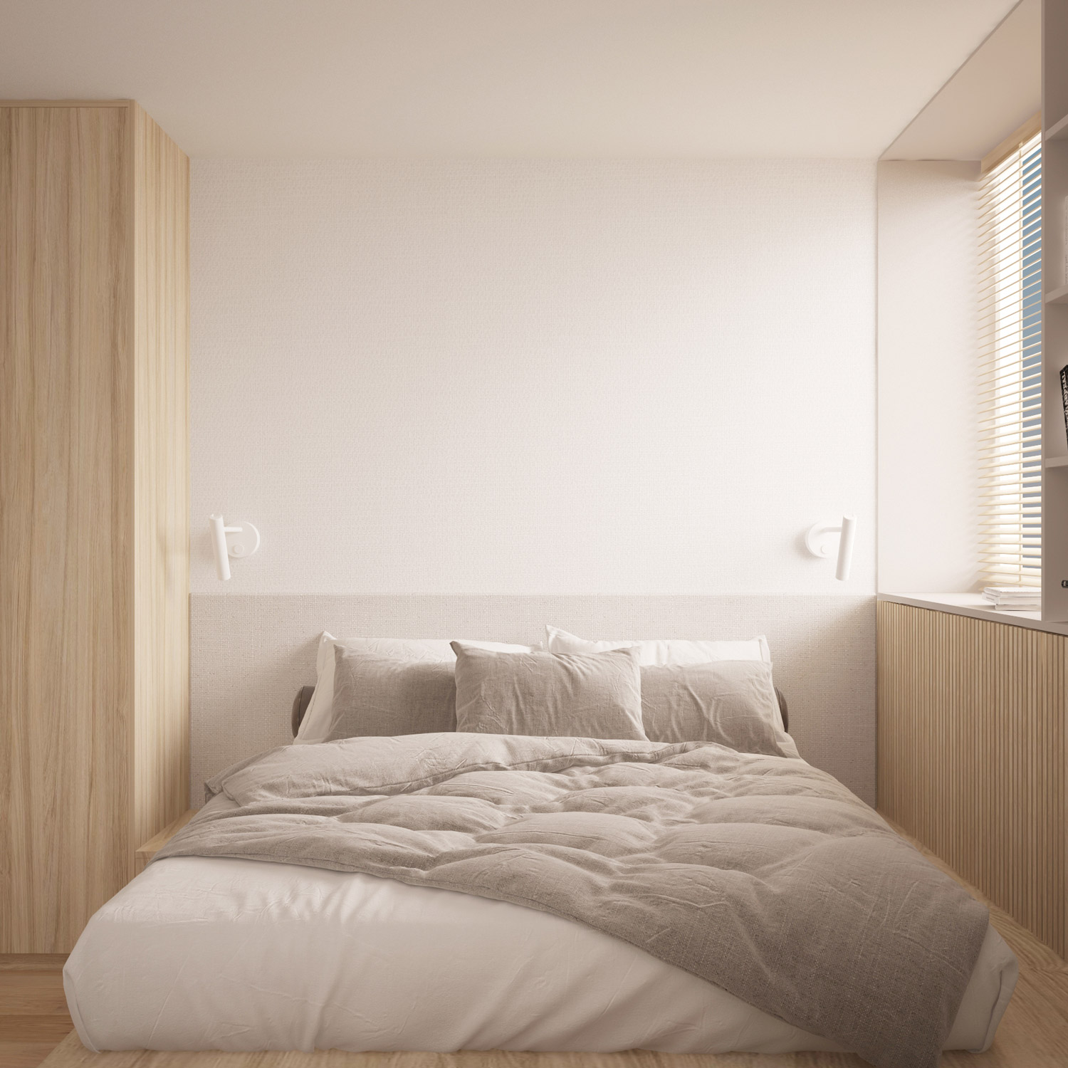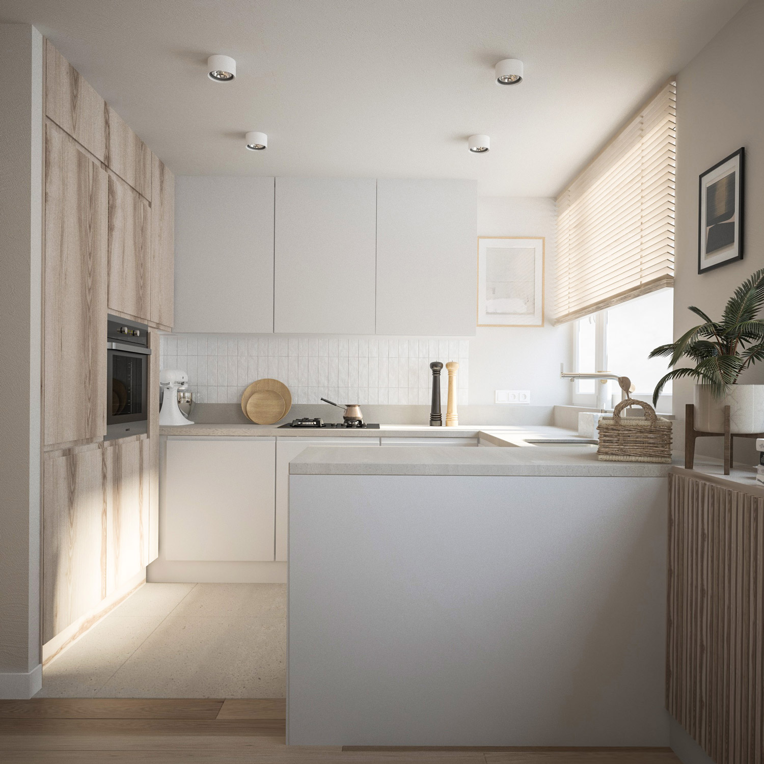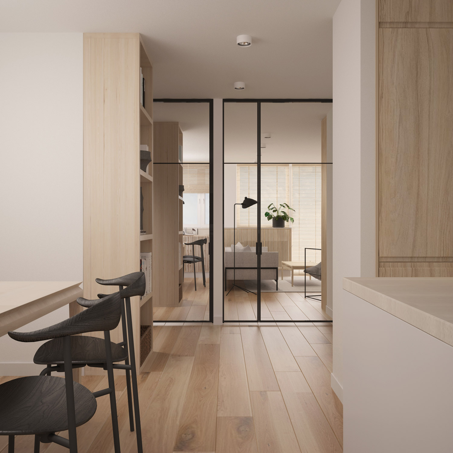 Remont mieszkania z rynku wtórnego miał na celu dostosowanie przestrzeni do potrzeb domowników. Zmieniono układ funkcjonalny, likwidując część ścian działowych i tworząc otwartą strefę kuchenno-jadalnianą, będącą priorytetem inwestorów. Wprowadzono minimalistyczne, naturalne materiały oraz stonowaną paletę barw. Projekt uzupełniono o praktyczne rozwiązania do przechowywania i nowoczesne oświetlenie. Modernizacja podniosła komfort użytkowania typowego mieszkania w wielkiej płycie.