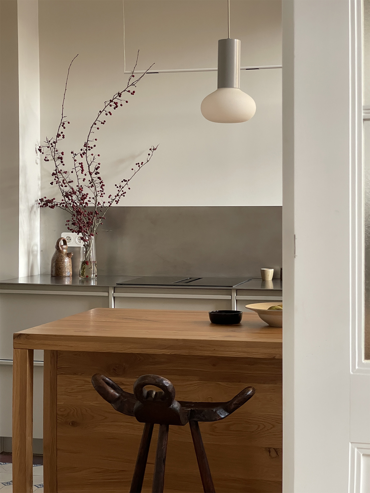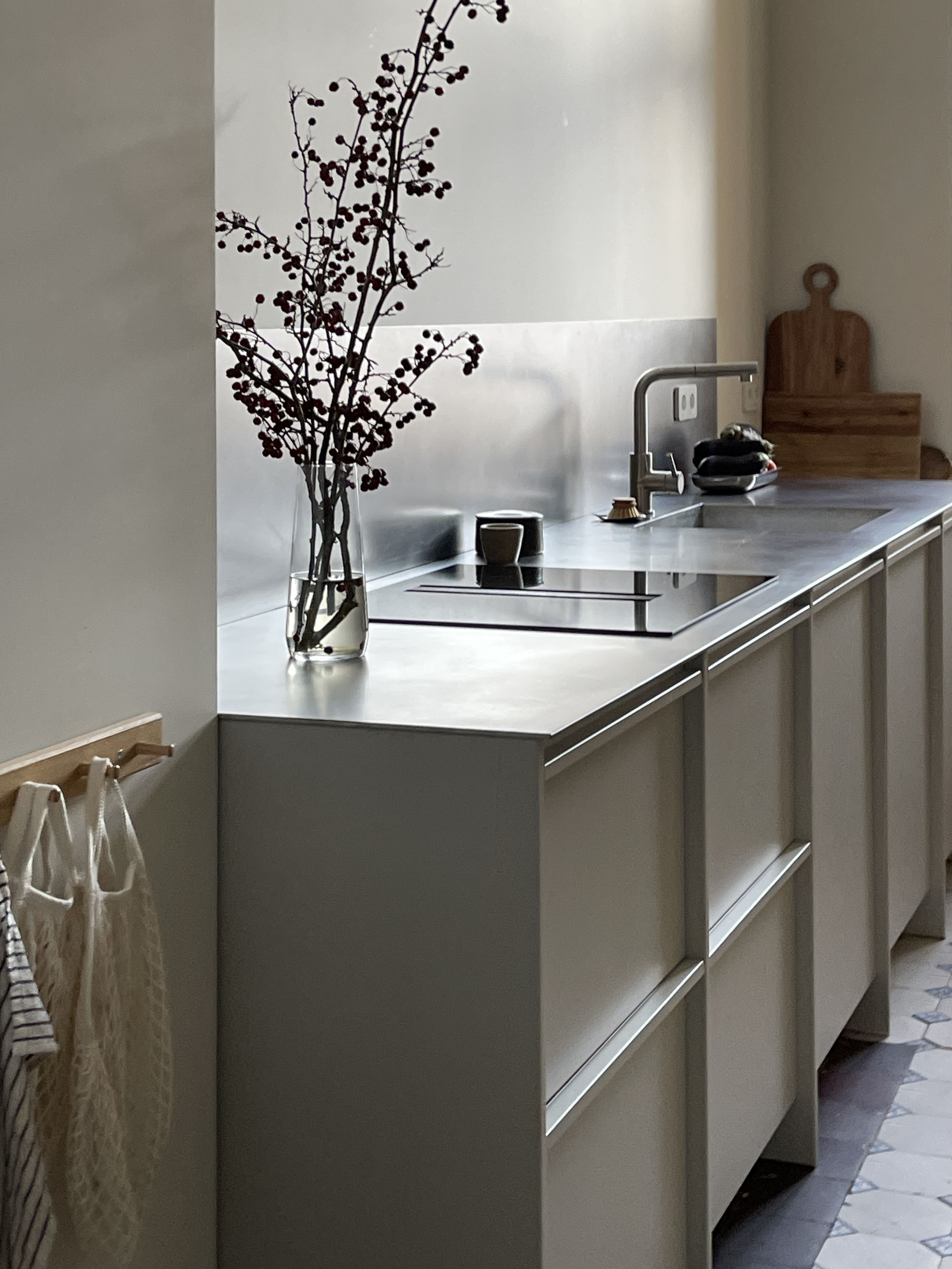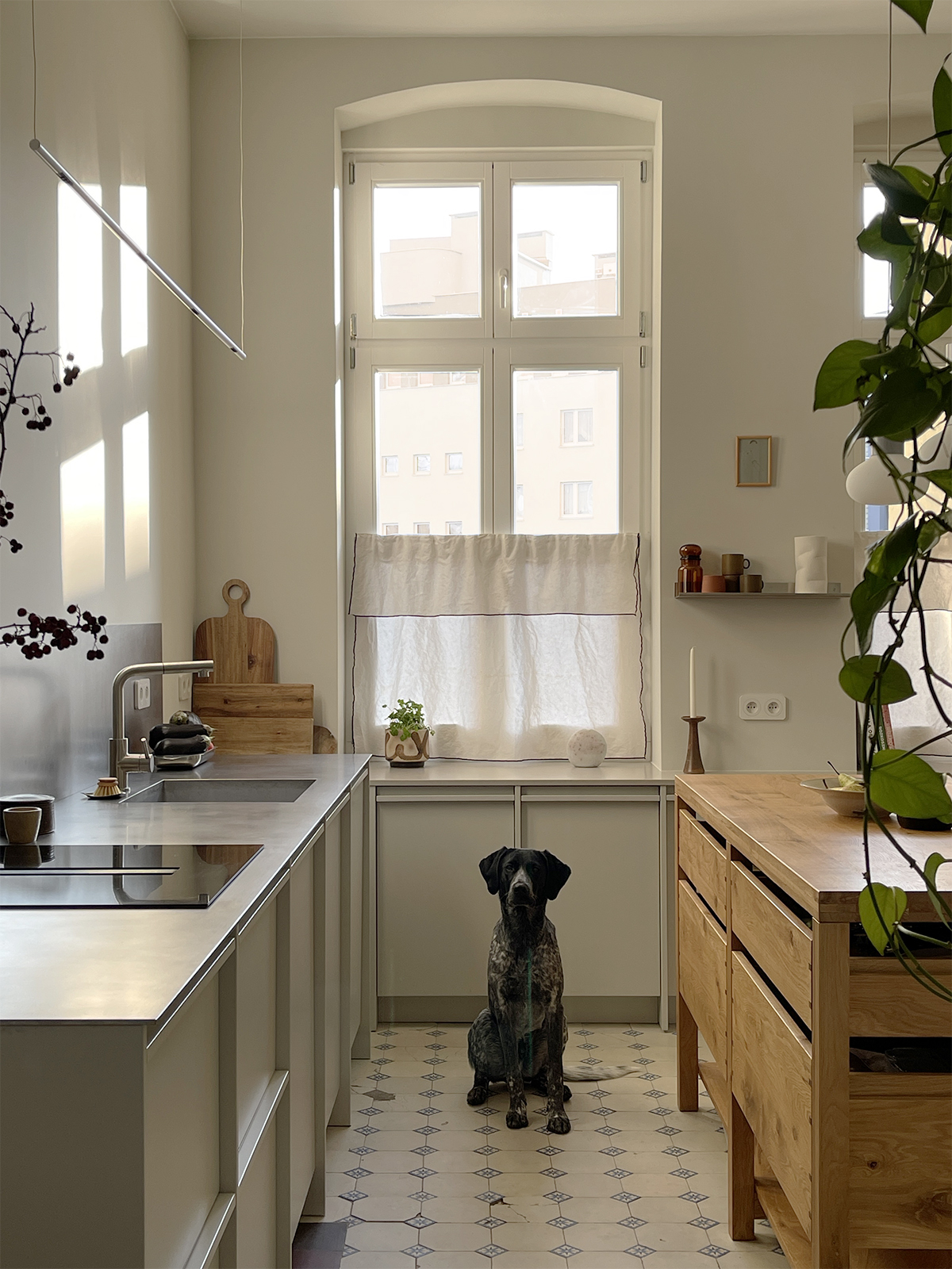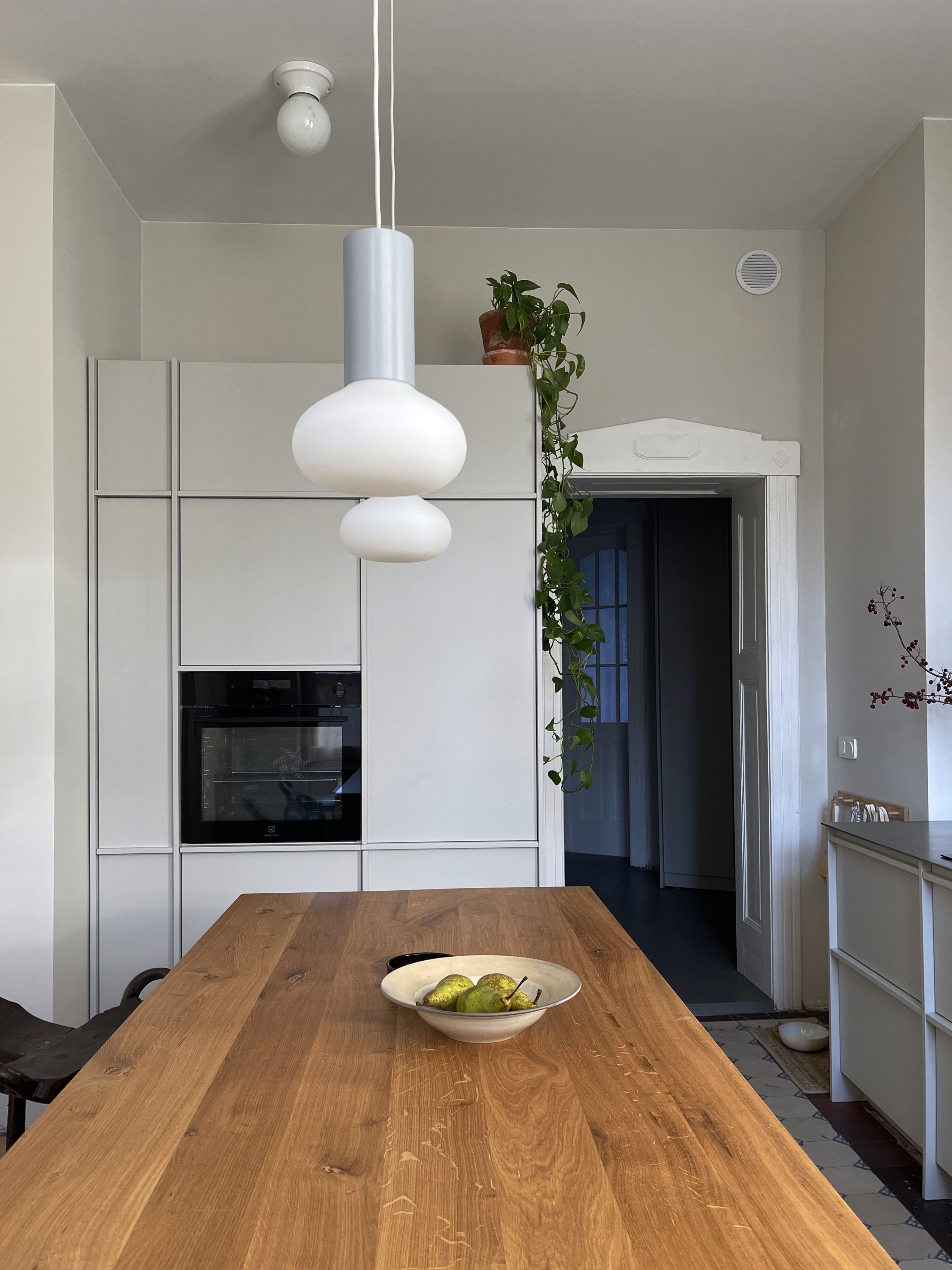 Projekt mieszkania w przedwojennej kamienicy, oparty na zachowaniu oryginalnych elementów oraz przemyślanej zmianie układu funkcjonalnego. Pierwotnie wszystkie pomieszczenia dostępne były z holu, układ ten został zmodyfikowany poprzez powiększenie łazienki oraz połączenie biura z przechodnią kuchnią, gdzie wykonano replikę drzwi dwuskrzydłowych na wzór oryginalnej stolarki. Zachowano i odnowiono historyczne detale takie jak stolarka drzwiowa, sztukaterie, drewniane podłogi oraz oryginalne kafle cementowe.